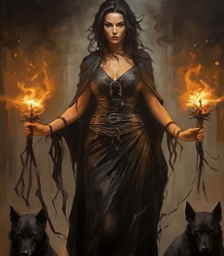 Em síntese, Hécate representa a guardiã dos limiares aquela que ilumina o caminho nas fases mais obscuras, ajudando a transformar crise em sabedoria e medo em poder pessoal.